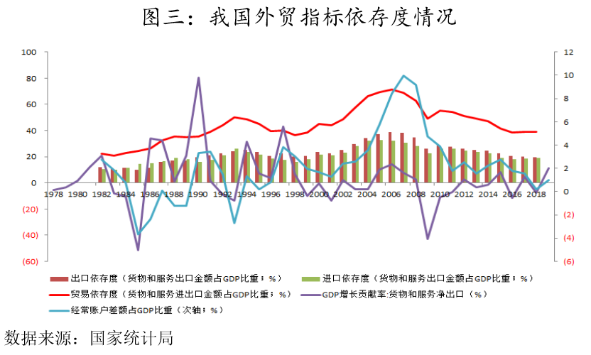 以上行業及總量層面對外依存度的變化趨勢表明:中國沒有在產業層面迅速降低對外依存度的可能性;沒有在總量層面進一步降低對外依存度的必要性;沒有在出口導向和進口替代戰略之間,做出非此即彼抉擇的迫切性。