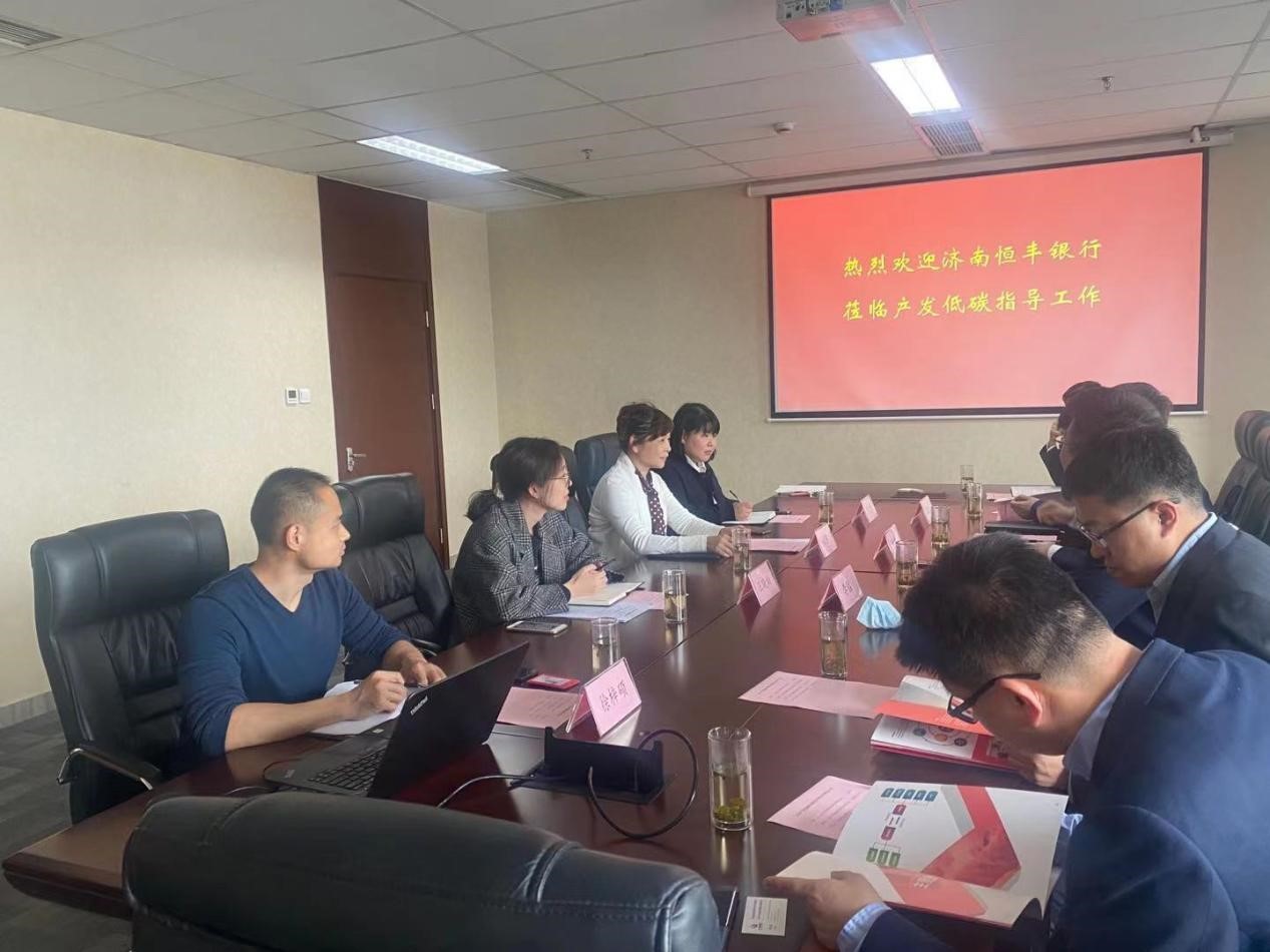 4月12日下午,恒豐銀行總行公司部副總經理耿偉,濟南分行副行長李猛,分行管理部總經理陳改等一行6人來到濟南碳排放權交易中心、山東產發低碳環??萍加邢薰菊{研。山東省循環經濟協會碳交易專委會主任,濟南碳排放交易中心、山東產發低碳環??萍加邢薰偨浝磬嶌o會見耿總,雙方進行了洽談,服務中心主任王曉甜及相關人員參加會議。