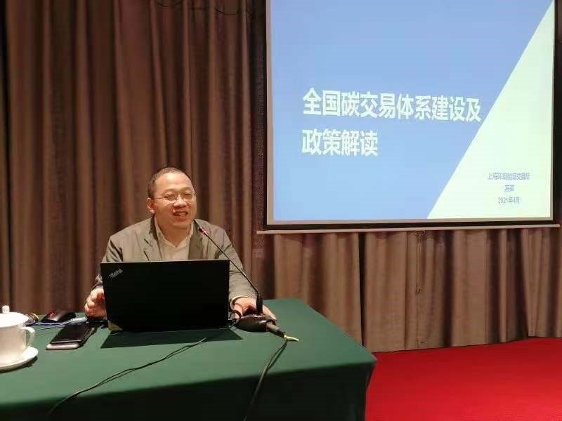開班儀式后,上海環境能源交易所副總經理賓暉作本次培訓班碳交易主題授課,圍繞全國碳交易體系建設及政策進行了深入淺出的解讀。