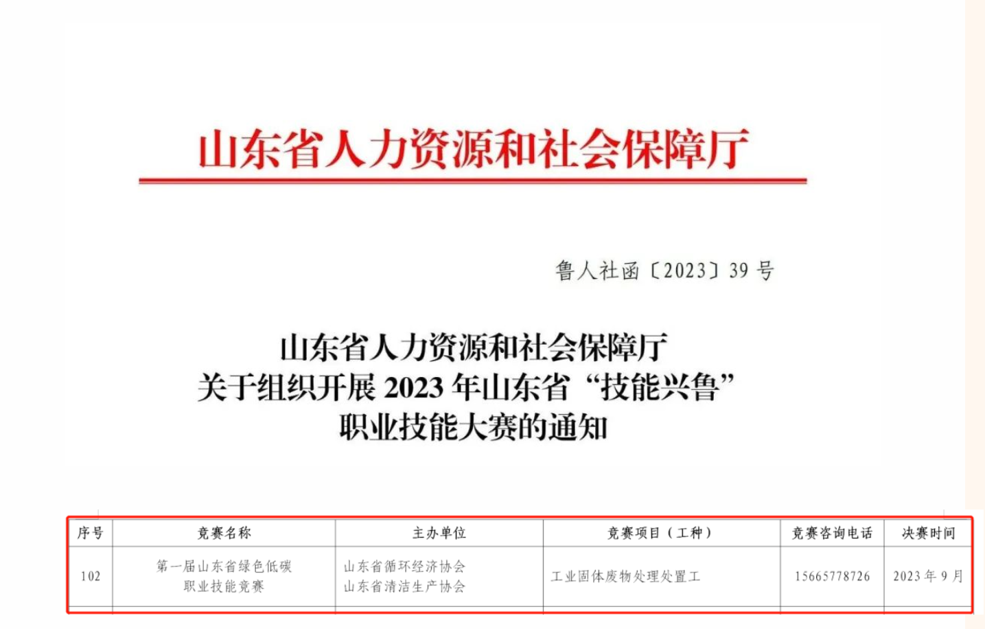 近日,山東省人力資源和社會保障廳發布《山東省人力資源和社會保障廳 關于組織開展 2023 年山東省“技能興魯” 職業技能大賽的通知》,由我會和省清潔生產協會聯合主辦的“第一屆山東省綠色低碳職業技能競賽”成功入選2023年山東省“技能興魯”職業技能大賽二類賽事。