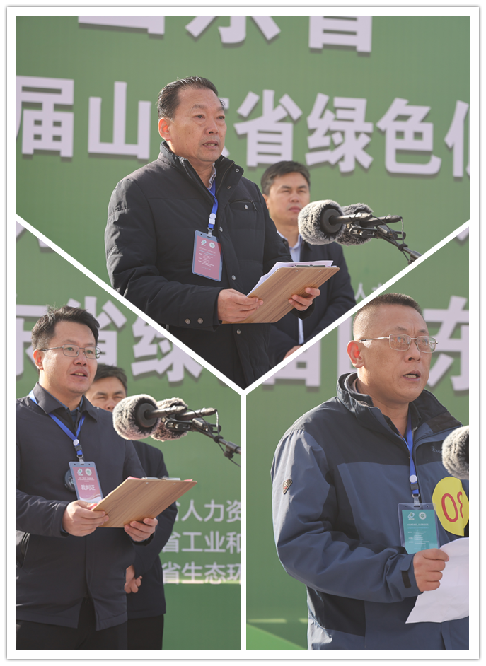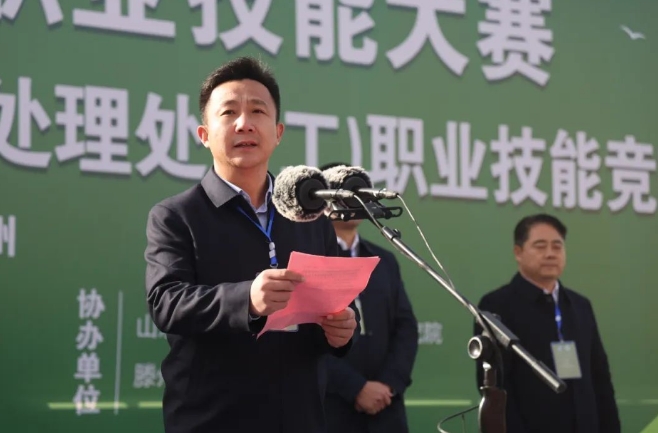 竇志強指出,第一屆山東省綠色低碳職業技能競賽的舉辦,將為全省工業固體廢物資源綜合利用提供人才支撐,助力山東綠色低碳高質量發展先行區建設。鄒曉東表示,本次職業技能大賽是一次將傳統工匠精神融入新時代高素質職業技能人才培養的有益嘗試,將有效推動山東省綠色低碳事業的發展。王家賀指出,本次技能大賽為全省工業固廢處理處置技能人才提供展示技能、相互切磋技藝的平臺。韓興闊在致辭中表示將以此次活動為契機,認真落實國家和省市部署要求,進一步做大做強綠色建材產業,倡導綠色低碳發展理念。鞏延岳致賀詞表示,企業界積極參與綠色低碳領域的技能賽事, 是與全省同行攜手促進綠色低碳高質量發展的具體行動。
