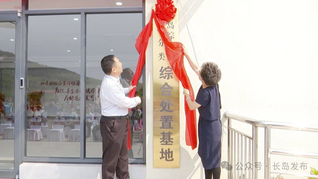 彭近新、宋繼寶、張忠蓮、牟云分別為長島產學研基地和長島垃圾分類處置基地揭牌